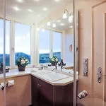 The property comprises a sitting area featuring a sofa and a work desk, and modern comforts like high-speed internet and a satellite television. Beds fitted with feather down pillows are at guests' disposal. A bathroom includes a tub, a walk-in shower, and a separate toilet, as well as hair dryers and bathrobes.